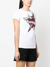embellished-logo detail T-shirt cloud white cotton crystal embellishment logo print to the front round neck short sleeves straight hem Made in Italy Composition Cotton 100% SIZE & FIT Model measurements Height 5 ft 11 in(1.8 m) Bust/Chest 33.07 in(84 cm) Hips 37.4 in(95 cm) Waist 25.19 in(64 cm) FittingInformation This piece fits true to size. We recommend you get your regular size Cut for a close fit Made with a mid-weight fabric Washing instructions Hand Wash