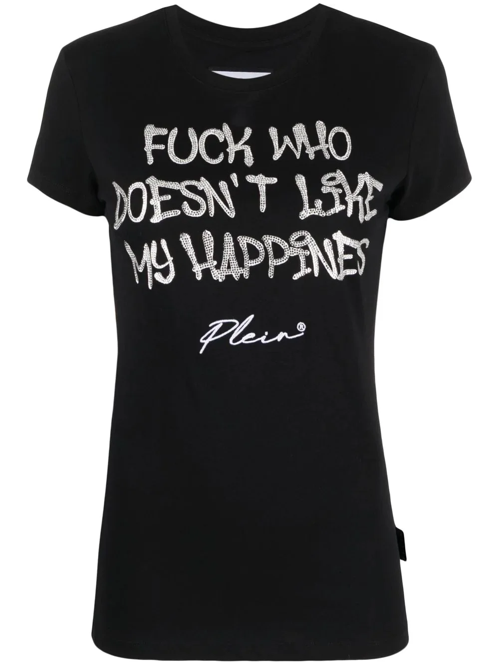 Sexy Pure rhinestone-embellished T-shirt Made from soft cotton, this black short-sleeve T-shirt is adorned with glistening rhinestones and a bold quote motif evocative of Philipp Plein's self-referential and provocative approach to garments. Imported Composition Cotton 100% SIZE & FIT Model measurements Height 5 ft 10 in(1.78 m) Bust/Chest 32.28 in(82 cm) Hips 35.03 in(89 cm) Waist 23.22 in(59 cm) FittingInformation This piece fits true to size. We recommend you get your regular size Cut for a slim fit Made with a mid-weight fabric Washing instructions Hand Wash