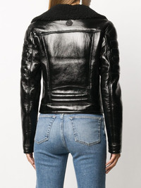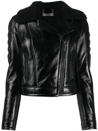 shearling-trimmed moto jacket Highlights - Black - Leather - Textured finish - Shearling trims - Long sleeves - Slim fit - Front zip fastening - Front zip fastening pockets Imported Composition Outer: Lamb Skin 100% Lining: Lamb Fur 100% SIZE & FIT Model measurements Height 5 ft 9 in(1.76 m) Bust/Chest 31.88 in(81 cm) Hips 37 in(94 cm) Waist 25.19 in(64 cm) FittingInformation This piece fits true to size. We recommend you get your regular size Cut for a slim fit Made with a mid-weight non-stretch fabric Washing instructions Specialist Cleaning