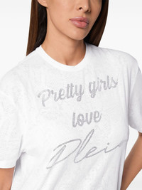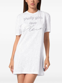 short sleeve t-shirt dress Highlights - White - Cotton blend - Crew neck - Short sleeves - Crystal embellishment - Straight hem Imported Composition Glass Fiber 100%, Polyester 50%, Cotton 50%