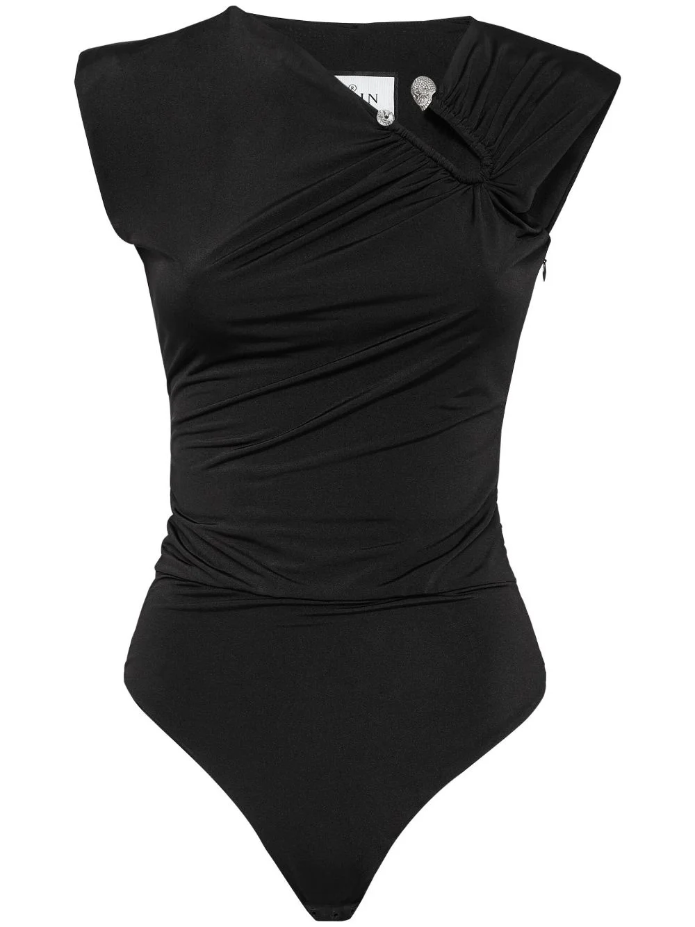 shoulder-padded bodysuit Highlights - Black - Crystal embellishment - Skull stud embellishment - Asymmetric neck - Gathered detailing - Shoulder pads - Sleeveless - Bodycon design - Stretch-design - Just a reminder that this piece must be tried on over your own garments. Imported Composition Polyamide 100%