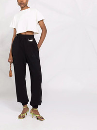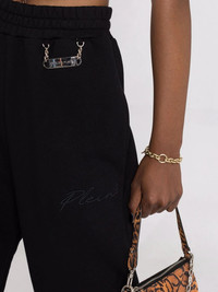 signature logo-embroidered joggers black embroidered logo to the side silver-tone logo plaque elasticated waistband two side slit pockets elasticated cuffs Imported Composition Polyester 95%, Spandex/Elastane 5% SIZE & FIT Model measurements Height 5 ft 11 in(1.8 m) Bust/Chest 31.49 in(80 cm) Hips 36.61 in(93 cm) Waist 24.4 in(62 cm) FittingInformation This piece fits true to size. We recommend you get your regular size Designed to be loose over the leg with a fitted waist and hem Made with a mid-weight stretch fabric Washing instructions Hand Wash