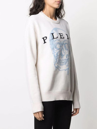 skull-intarsia jumper white/sky blue/black wool-blend intarsia knit skull motif crew neck long sleeves ribbed detailing Made in Italy Composition Wool 90%, Mohair 7%, Polyamide 3% SIZE & FIT Model measurements Height 5 ft 10 in(1.79 m) Bust/Chest 33.07 in(84 cm) Hips 35.82 in(91 cm) Waist 24.01 in(61 cm) Washing instructions Dry Clean Only