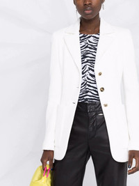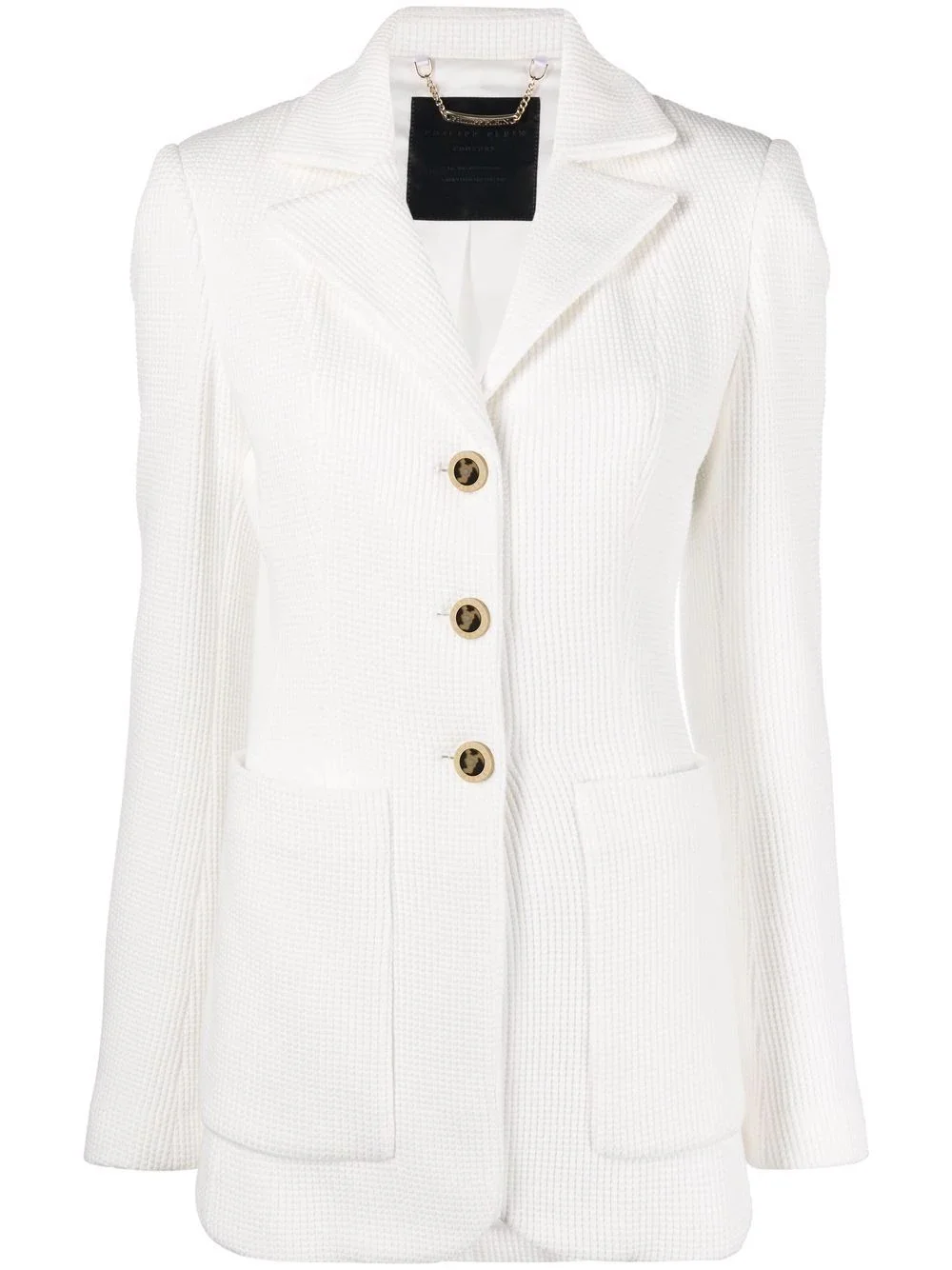 single-breasted cotton blazer Displaying a boxy silhouette and front button fastening, Philipp Plein's single-breasted blazer features notched lapels and long sleeves. Enhanced with gold-tone hardware, the classic design exhibits the brand's penchant for tailoring. Made in Italy Composition Outer: Cotton 100% Lining: Polyester 100% SIZE & FIT Model measurements Height 5 ft 11 in(1.8 m) Bust/Chest 32.67 in(83 cm) Hips 36.22 in(92 cm) Waist 24.4 in(62 cm) FittingInformation This piece fits true to size. We recommend you get your regular size Cut for a slim fit Made with a mid-weight fabric Washing instructions Dry Clean Only