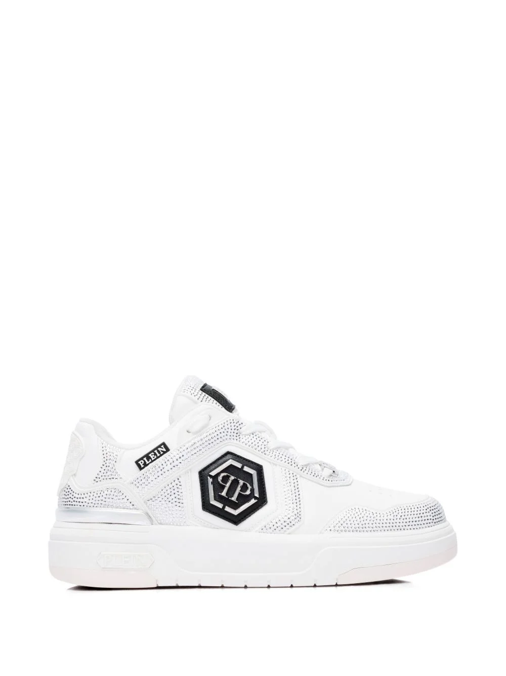 SK8R rhinestones low-top sneakers Highlights - White - Rhinestone embellishment - Silver-tone logo - Rubber sole - Padded quilted ankle - Perforated details Imported Composition Outer: Artificial Leather 100%, Fabric 100%, glass 100% Lining: Fabric 100% Sole: Rubber 100%