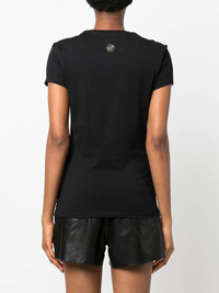 skeleton-print round neck T-shirt black/multicolour cotton/glass rhinestone embellishment skull print round neck short sleeves straight hem Imported Composition Cotton 100%, glass 100% SIZE & FIT Model measurements Height 5 ft 11 in(1.8 m) Bust/Chest 31.88 in(81 cm) Hips 35.03 in(89 cm) Waist 24.01 in(61 cm) FittingInformation This piece fits true to size. We recommend you get your regular size Cut for a slim fit Made with a mid-weight fabric Washing instructions Hand Wash