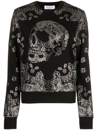 skull-bandana cotton-blend sweatshirt Highlights - Black/silver-tone - Cotton blend - Bandana print - Skull print - Logo print to the rear - Crew neck - Long sleeves - Ribbed cuffs and hem - Straight hem Imported Composition Cotton 75%, Polyester 20%, Elastane 5% SIZE & FIT Model measurements Height 5 ft 10 in(1.78 m) Bust/Chest 29.92 in(76 cm) Hips 34.64 in(88 cm) Waist 23.62 in(60 cm) FittingInformation Designed for a relaxed fit, this piece allows for comfort and movement when worn Made from a midweight stretch fabric, this piece offers elasticity and flexibility when worn This piece fits true to size – take your usual size
