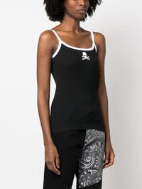 skull-print tank top Highlights - Black/white - Stretch-design - Fine ribbed - Contrasting trim - Logo print at the chest - Logo plaque - Square neck - Spaghetti straps - Sleeveless - Straight hem Imported Composition Polyester 95%, Elastane 5% SIZE & FIT Model measurements Height 6 ft 2 in(1.87 m) Bust/Chest 35.03 in(89 cm) Hips 39.37 in(100 cm) Waist 29.13 in(74 cm) FittingInformation Designed for a close fit throughout This piece fits true to size – take your usual size Washing instructions Hand Wash
