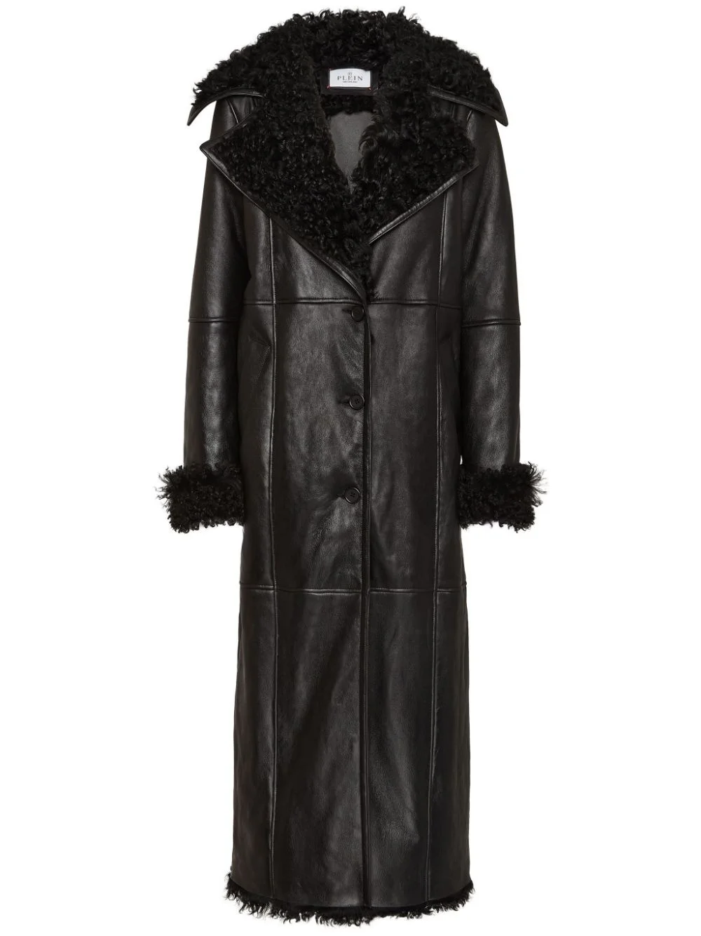 Skull & Bones shearling coat Highlights - Black - Shearling trim - Concealed front fastening - Notched lapels - Long sleeves - Slip pockets to the sides - Long length - Straight hem Imported Composition Sheep Skin/Shearling 100%