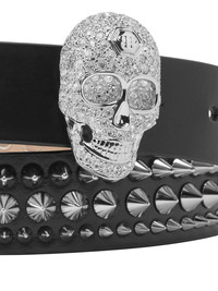 skull buckle leather belt Highlights - Black - Calf leather - Smoothing finish - Skull charm - Stud embellishment - Punch-hole detailing - Adjustable fit Made in Italy Composition Lining: Calf Leather 100% Outer: Calf Leather 100%, Plastic 100% SIZE & FIT Measurement WIDTH 1.18 in(3 cm)