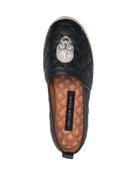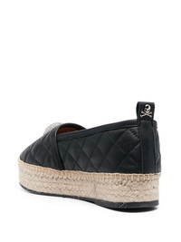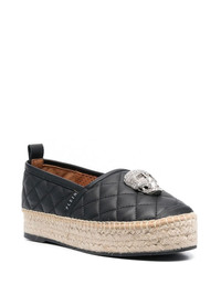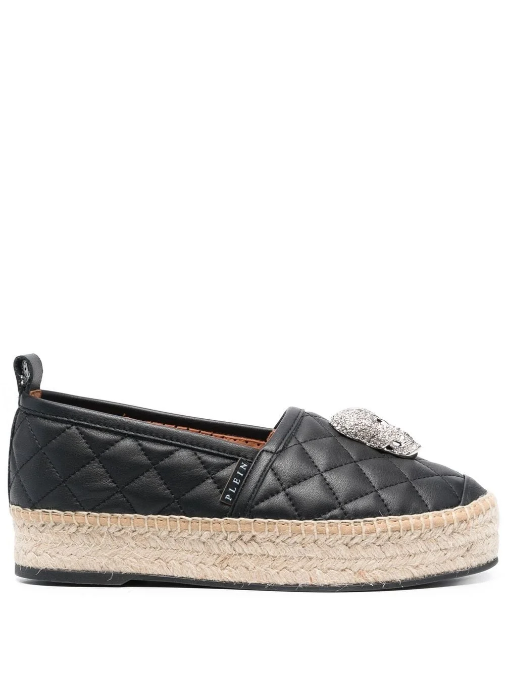 skull-embellishment quilted espadrilles black nappa leather raffia diamond quilting skull stud detailing crystal embellishment round toe logo pull-tab at the heel cushioned insole flat sole Imported Composition Leather 100% SIZE & FIT Measurement Sole height 1.18 in(3 cm)