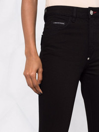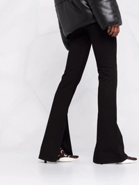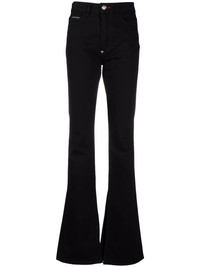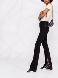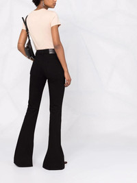 high-rise flared jeans black cotton-blend denim high waist belt loops front button and zip fastening classic five pockets flared slit detailing Imported Composition Lining: Polyester 65%, Cotton 35% Outer: Cotton 100% SIZE & FIT Model measurements Height 5 ft 11 in(1.8 m) Bust/Chest 31.49 in(80 cm) Hips 35.82 in(91 cm) Waist 24.8 in(63 cm) FittingInformation This piece fits true to size. We recommend you get your regular size Designed to be fitted at the waist and through the thigh, loose from the knee Made with a mid-weight non-stretch fabric Washing instructions Dry Clean Only