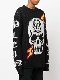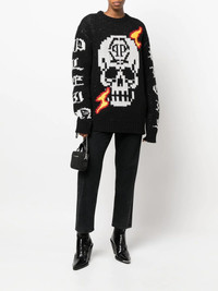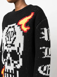 Skull intarsia-knit jumper black lambs wool skull print to the front intarsia-knit logo crew neck long sleeves Made in Italy Composition Lambs Wool 100% SIZE & FIT Model measurements Height 5 ft 11 in(1.8 m) Bust/Chest 31.88 in(81 cm) Hips 35.03 in(89 cm) Waist 24.01 in(61 cm) FittingInformation This piece fits true to size. We recommend you get your regular size Cut for a loose fit Made with a heavyweight fabric Washing instructions Hand Wash