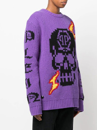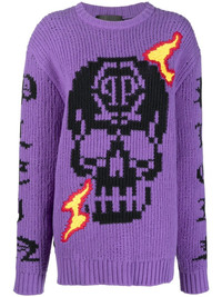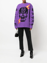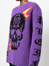 SKull intarsia-knit jumper dark purple lambs wool intarsia knit skull print crew neck long sleeves Made in Italy Composition Lambs Wool 100% SIZE & FIT Model measurements Height 5 ft 11 in(1.8 m) Bust/Chest 31.88 in(81 cm) Hips 35.03 in(89 cm) Waist 24.01 in(61 cm) FittingInformation This piece fits true to size. We recommend you get your regular size Cut for a loose fit Made with a heavyweight fabric Washing instructions Hand Wash