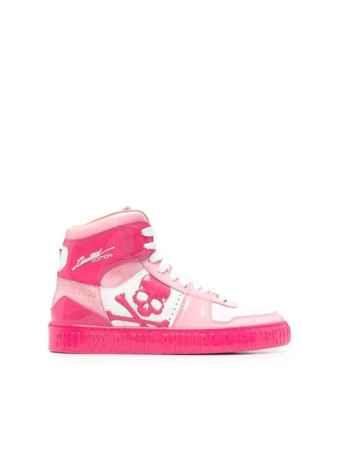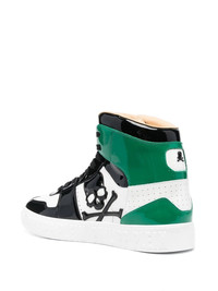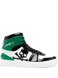 Skull lace-up sneakers Skull lace-up sneakers from PHILIPP PLEIN featuring multicolour, calf leather, skull patch detail, logo print to the side, front lace-up fastening, round toe and flat rubber sole. Made in Italy Composition Leather 100% SIZE & FIT Measurement HEEL 1.18 in(3 cm) HEIGHT 4.72 in(12 cm) Sole height 0.98 in(2.5 cm)