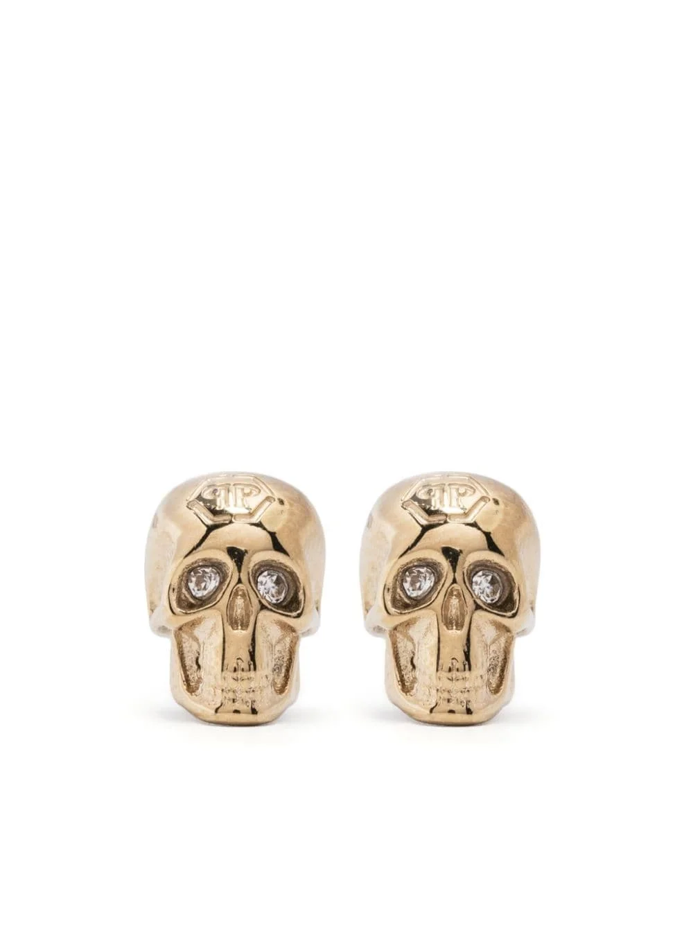 skull logo-studs earrings Highlights - Gold-tone - Metallic effect - Logo studs - Skull charm - Crystal embellishment - Butterfly fastening - For pierced ears - These earrings come as a pair. Imported SIZE & FIT Model measurements Height 5 ft 9 in(1.76 m) Bust/Chest 33.07 in(84 cm) Hips 34.64 in(88 cm) Waist 25.59 in(65 cm) Measurement HEIGHT 0.39 in(1 cm) Weight (single earring) 2 g(2 g) WIDTH 0.27 in(0.7 cm)