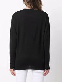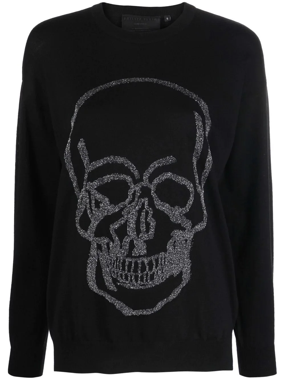 skull-print jumper black wool ribbed detailing skull print round neck long sleeves straight hem Imported Composition Wool 90%, Polyester 10% SIZE & FIT Model measurements Height 5 ft 9 in(1.75 m) Bust/Chest 32.67 in(83 cm) Hips 36.22 in(92 cm) Waist 24.8 in(63 cm) FittingInformation This piece fits true to size. We recommend you get your regular size Cut for a loose fit Made with a mid-weight fabric Washing instructions Hand Wash