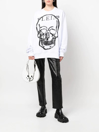 Skull-print long-sleeve sweatshirt Highlights - Black/white - Cotton - Jersey fleece - Skull print to the front - Logo print to the front - Logo patch to the rear - Crew neck - Long sleeves - Straight hem - When buying this unisex item, keep in mind that it is graded in standard men's sizing. Made in Italy Composition Cotton 88%, Polyester 12% SIZE & FIT Model measurements Height 5 ft 10 in(1.78 m) Bust/Chest 31.49 in(80 cm) Hips 36.22 in(92 cm) Waist 25.59 in(65 cm) FittingInformation This unisex piece is designed for a loose fit whether you usually select women's or men's sizes Made from a midweight non-stretch fabric, this piece offers minimal elasticity when worn