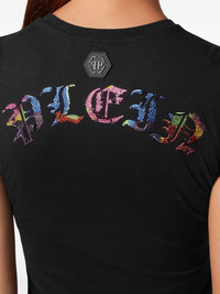 skull-print rhinestones-embellishment T-shirt Highlights - Black/multicolour - Cotton - Jersey texture - Rhinestone embellishment - Skull print to the front - Slogan print to the rear - Logo patch to the rear - Round neck - Short sleeves - Straight hem Imported Composition Cotton 100% Washing instructions Read Manufacturer Guidelines