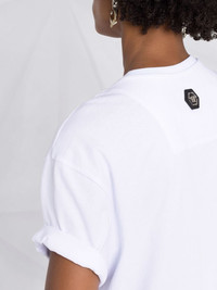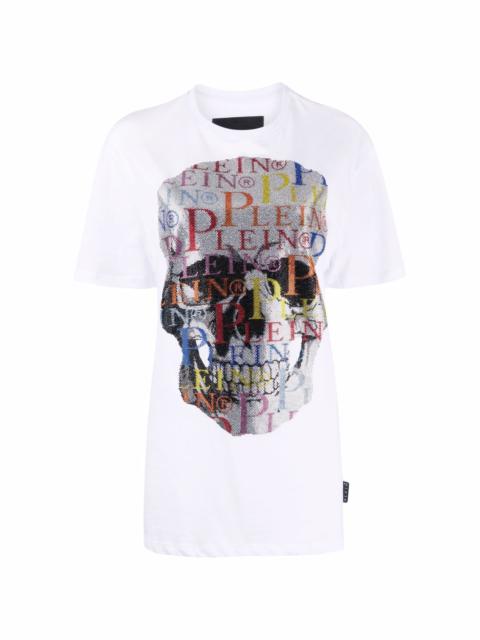 skull-print short-sleeve T-shirt Featuring a skull print at the front, this short-sleeve T-shirt from Philipp Plein showcases a key motif of the brand. Within this, the brand's logo is repeated in different scales and reflecting the 'more is more' approach of the brand, both elements are finished with crystal embellishment. Imported Composition Cotton 100% SIZE & FIT Model measurements Height 5 ft 11 in(1.8 m) Bust/Chest 31.49 in(80 cm) Hips 35.82 in(91 cm) Waist 24.8 in(63 cm) FittingInformation This piece fits true to size. We recommend you get your regular size Cut for a loose fit Made with a mid-weight fabric Washing instructions Hand Wash
