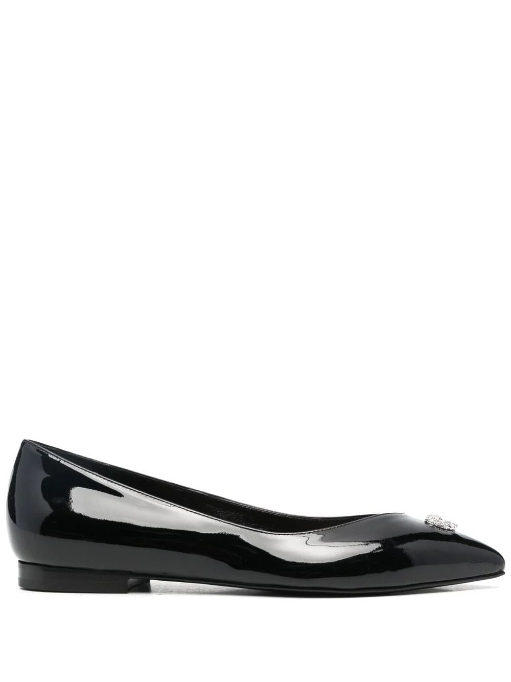 skull-stud ballerina shoes black calf leather patent finish skull stud detailing crystal embellishment pointed toe branded leather insole flat sole slip-on style Made in Italy Composition Lining: Calf Leather 100% Sole: Calf Leather 100% Outer: Calf Leather 100% SIZE & FIT Measurement HEEL 0.59 in(1.5 cm) Sole height 0.39 in(1 cm)