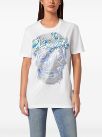 skull T-shirt Highlights - White - Cotton - Jersey texture - Skull print to the front - Crew neck - Short sleeves - Logo print to the front - Crystal embellishment - Applique logo - Straight hem Made in Italy Composition Cotton 100%