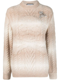 Skull&Bones stripe-pattern knitted jumper Highlights - Beige/white - Alpaca wool-blend - Knitted construction - Cable knit - Skull charm - Horizontal stripe pattern - Ribbed cuffs and hem - Round neck - Long sleeves - Straight hem Made in Italy Composition Alpaca Wool 63%, Polyamide 37% Washing instructions Machine Wash