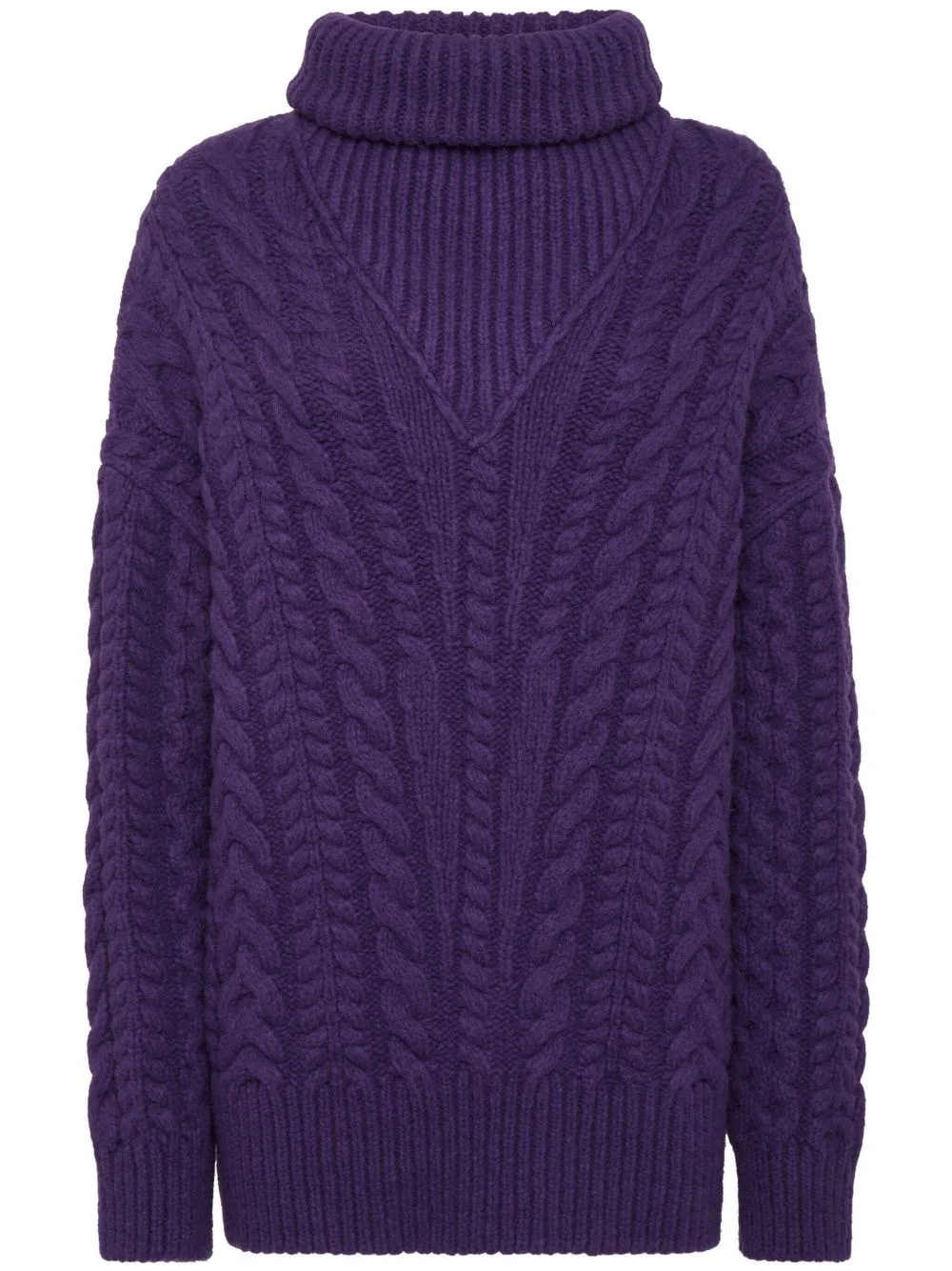 Skull&Bones turtleneck sweater Highlights - Dark purple - Roll neck - Cable knit - Ribbed trim Made in Italy Composition Fabric 100% Washing instructions Read Manufacturer Guidelines