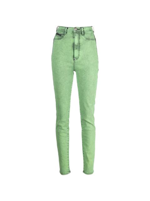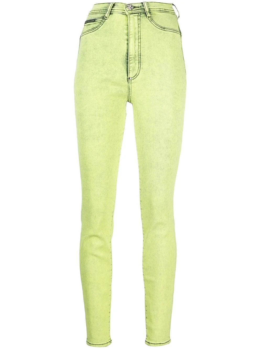 Super High Waist jeggings Highlights - Acid yellow - Silver-tone logo plaque - Skinny cut - High waist - Front button and zip fastening - Classic five pockets Imported Composition Cotton 92%, Polyester 6%, Spandex/Elastane 2% SIZE & FIT Model measurements Height 5 ft 11 in(1.8 m) Bust/Chest 33.07 in(84 cm) Hips 37.4 in(95 cm) Waist 25.19 in(64 cm) FittingInformation This piece fits true to size. We recommend you get your regular size Cut for a close fit Made with a mid-weight stretch fabric Washing instructions Dry Clean Only