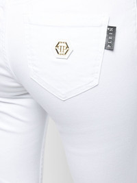 slim fit jeggings Highlights - White - Cotton-lyocell blend - Stretch-design - Mid-rise - Logo patch to the front - Concealed front fastening - Slim cut Made in Italy Composition Outer: Lyocell 63%, Cotton 30%, Polyester 5%, Spandex/Elastane 2% Lining: Polyester 65%, Cotton 35% SIZE & FIT Model measurements Height 5 ft 10 in(1.78 m) Bust/Chest 31.49 in(80 cm) Hips 36.22 in(92 cm) Waist 25.59 in(65 cm) FittingInformation This piece fits true to size. We recommend you get your regular size Cut for a close fit Made with a mid-weight stretch fabric Washing instructions Machine Wash