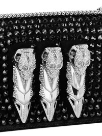 small crystal-embellished shoulder bag Highlights - Black - Calf leather - Crystal embellishment - Skull applique - Chain-link shoulder strap - Foldover top with magnetic fastening - Main compartment - Internal slip pocket - Leopard-print contrast lining - Silver-tone hardware Made in Italy Composition Outer: Calf Leather 100% Lining: Polyester 100%