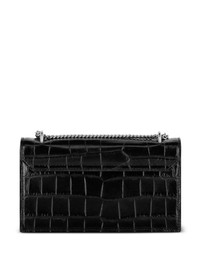 small skull-applique shoulder bag Highlights - Black - Calf leather - Embossed crocodile effect - Skull applique - Crystal embellishment - Chain-link shoulder strap - Foldover top with magnetic fastening - Main compartment - Internal slip pocket - Leopard print lining - Silver-tone hardware Made in Italy Composition Outer: Calf Leather 100%
