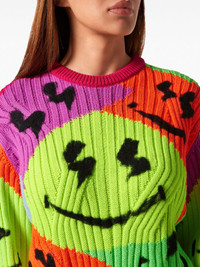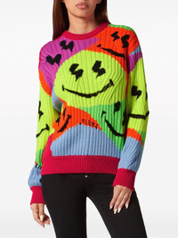 smile-intarsia ribbed-knit jumper Highlights - Multicolour - Wool blend - Chunky ribbed knit - Patterned intarsia knit - Smiley face motif - Ribbed trim - Crew neck - Drop shoulder - Long sleeves Made in Italy Composition Wool 50%, Acrylic 50% Washing instructions Read Manufacturer Guidelines