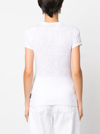 snakeskin-print cotton T-shirt Highlights - Milk white/black - Cotton - All-over snakeskin print - Rhinestone embellishment - Crew neck - Short sleeves - Straight hem Imported Composition Polyester 100%, Cotton 100% SIZE & FIT Model measurements Height 5 ft 11 in(1.8 m) Bust/Chest 31.49 in(80 cm) Hips 35.43 in(90 cm) Waist 24.4 in(62 cm) FittingInformation Designed for a slim fit that sits just away from the body offering a close yet comfortable fit Made from a midweight non-stretch fabric, this piece offers minimal elasticity when worn This piece fits true to size – take your usual size Washing instructions Hand Wash