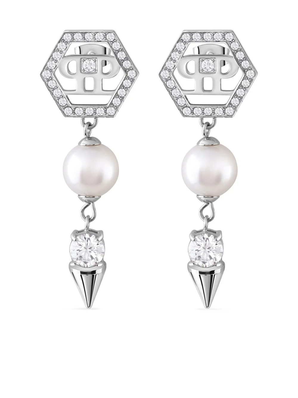 stainless-steel earrings Highlights - Silver-tone - Stainless steel - Crystal embellishments - Pearl embellishments - Drop style - Post-back fastening - These earrings come as a pair. Imported
