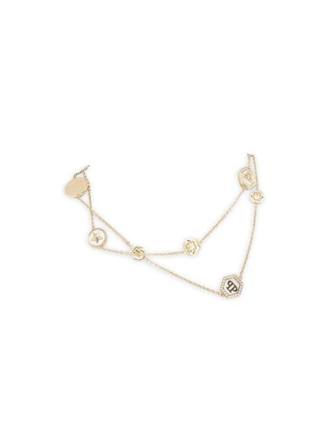 stainless-steel necklace Highlights - Gold-tone - Chain - Skull detail - Logo detail - Embellished detail Imported
