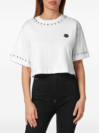 star-studded cotton cropped top Highlights - White - Cotton - Jersey texture - Star stud detailing - Applique logo - Logo tag - V-neck - Sleeveless - Straight hem - Cropped Made in Italy Composition Cotton 100%