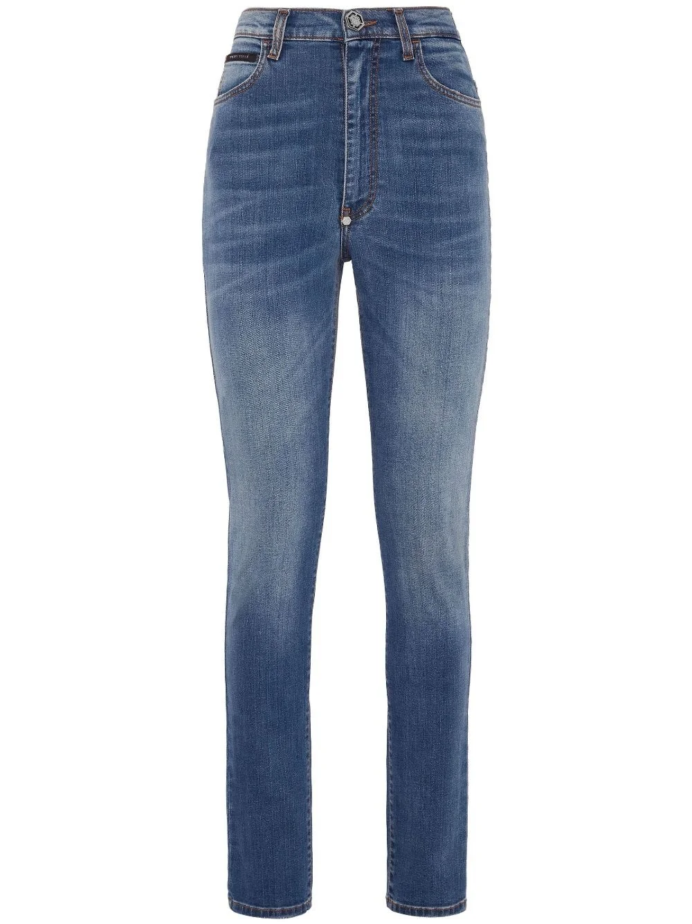 high-rise skinny jeans Highlights - Blue - Stretch-cotton - Denim - Logo patch to the rear - Mini logo tag - High waist - Skinny cut - Front button and zip fastening - Belt loops - Classic five pockets Made In Italy Composition Cotton 98%, Elastane 2% SIZE & FIT FittingInformation Designed for a skinny fit, these jeans offer a close fit throughout Constructed from stretch denim, this piece offers a stretch fit with durability This piece fits true to size – take your usual size