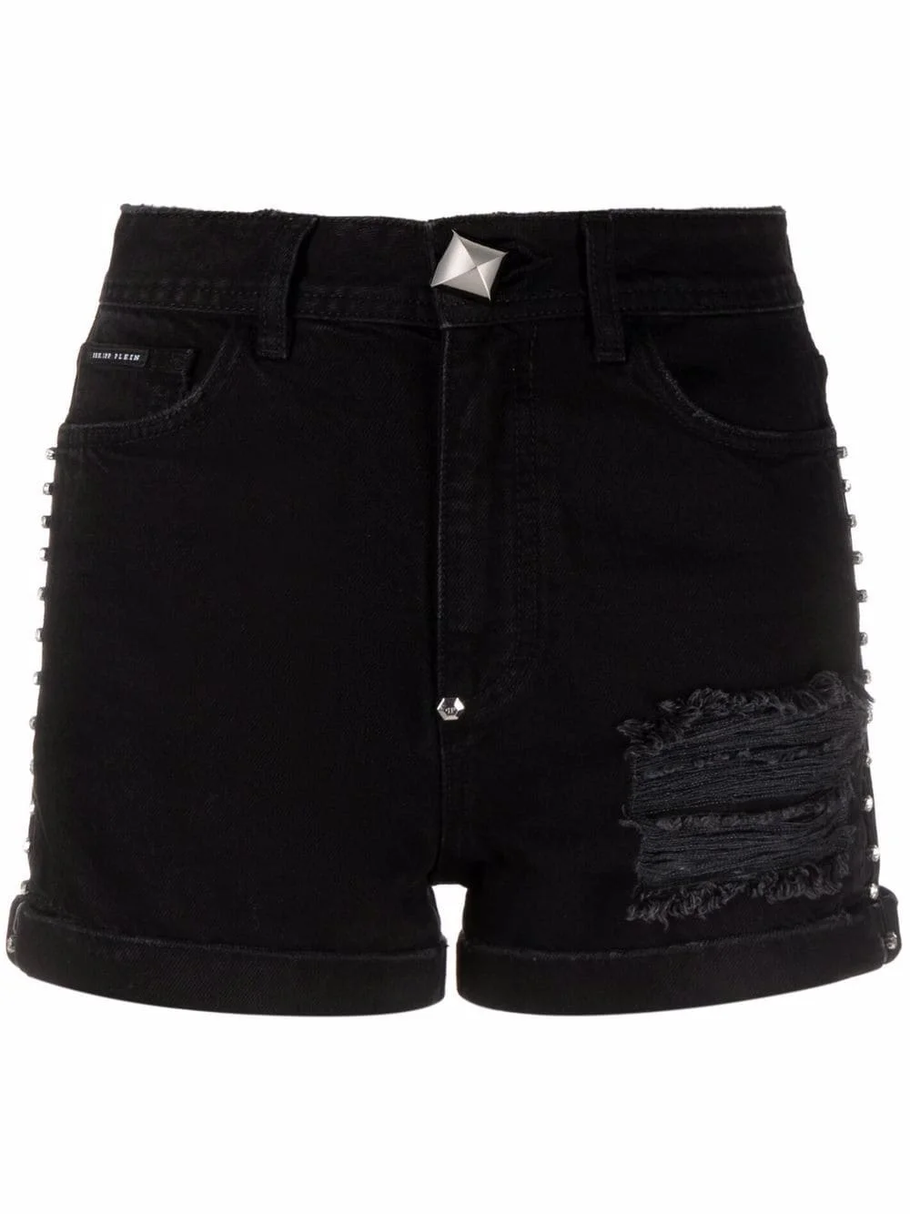 Stones denim hot pants Philipp Plein’s signature Stones designs are characterised by sparkling rhinestones. Case in point: these Stones denim hot pants draw the eye with their shimmering rhinestone-studded side trims whilst the ripped details add a distressed, worn-in look. Imported Composition Outer: Cotton 100% Lining: Polyester 65%, Cotton 35% SIZE & FIT Model measurements Height 5 ft 10 in(1.77 m) Bust/Chest 32.67 in(83 cm) Hips 35.43 in(90 cm) Waist 23.62 in(60 cm) FittingInformation This piece fits true to size. We recommend you get your regular size Cut for a close fit Made with a mid-weight non-stretch fabric Washing instructions Dry Clean Only
