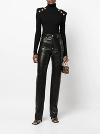 straight-leg lambskin trousers black lambskin cotton blend straight leg front button and zip fastening belt loops Imported Composition Lining: Polyester 65%, Cotton 35% Outer: Lamb Skin 100% SIZE & FIT Model measurements Height 5 ft 11 in(1.8 m) Bust/Chest 31.49 in(80 cm) Hips 36.61 in(93 cm) Waist 24.4 in(62 cm) FittingInformation This piece fits true to size. We recommend you get your regular size Cut for a slim fit Made with a mid-weight fabric Washing instructions Specialist Cleaning
