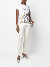 stretch-wool straight-trousers A classic pair of white trousers by Phillipp Plein, with a slim straight leg design, concealed fly fastening and a subtle logo plaque to the rear. Made in Italy Composition Polyester 53%, Wool 43%, Spandex/Elastane 4% SIZE & FIT Model measurements Height 5 ft 10 in(1.77 m) Bust/Chest 34.64 in(88 cm) Hips 35.43 in(90 cm) Waist 24.8 in(63 cm) FittingInformation This piece fits true to size. We recommend you get your regular size Cut for a slim fit Made with a mid-weight stretch fabric Washing instructions Dry Clean Only