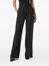 striped tailored trousers Highlights - Black/silver - Vertical stripe pattern - Glitter detailing - Concealed fly and button fastening - Belt loops - Logo patch to the rear - High waist - Straight hem Made in Italy Composition Acetate 70%, Polyester 30%