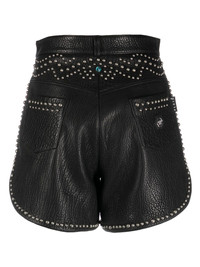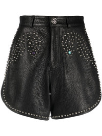 stud-embellished leather hot pants Highlights - Jet black - Lambskin - Pebbled texture - Stud embellishment - Crystal embellishment - Logo plaque to the rear - High-waisted - Belt loops - Front button and zip fastening - Two rear patch pockets Imported Composition Lining: Polyester 97%, Spandex/Elastane 3% Outer: Lamb Skin 100%