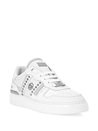 stud-embellished low-top sneakers Highlights - White - Lace-up front fastening - Stud-embellished - Round toe - Perforated toebox - Padded ankle - Branded insole Made in Italy Composition Outer: Bovine Split Leather 100%, Calf Leather 100%, Zamak 100%, Acrylonitrile Butadiene Styrene (ABS) 100% Lining: Calf Leather 100% Sole: Rubber 100%