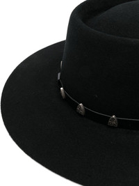 stud-embellished wool boater hat Highlights - Black - Wool - Curved wide brim - Push-down crown - Silver-tone stud embellishment - Pull-on style Made in Italy Composition Wool 100% SIZE & FIT Measurement BRIM 3.14 in(8 cm) CIRCUMFERENCE 22.44 in(57 cm)