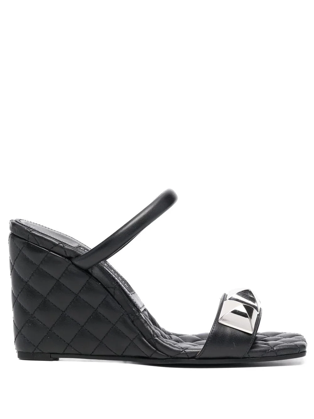 Matelasse leather wedges Highlights - Black/gold - Leather - Gold-tone hardware - Studded trim - Caged design - Open toe - High stiletto heel Made in Italy Composition Sole: Leather 100% Lining: Leather 100% Outer: Leather 100% SIZE & FIT Measurement HEEL 3.93 in(10 cm)