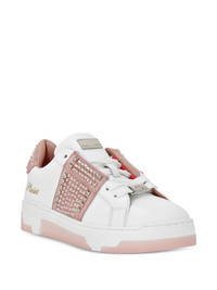 studded leather sneakers Highlights - White - Tonal studded detailing - Logo print to the side - Pink rubber sole Made in Italy Composition Outer: Zamak 100%, Acrylonitrile Butadiene Styrene (ABS) 100%, Calf Leather 100%, glass 100% Lining: Calf Leather 100% Sole: Rubber 100%