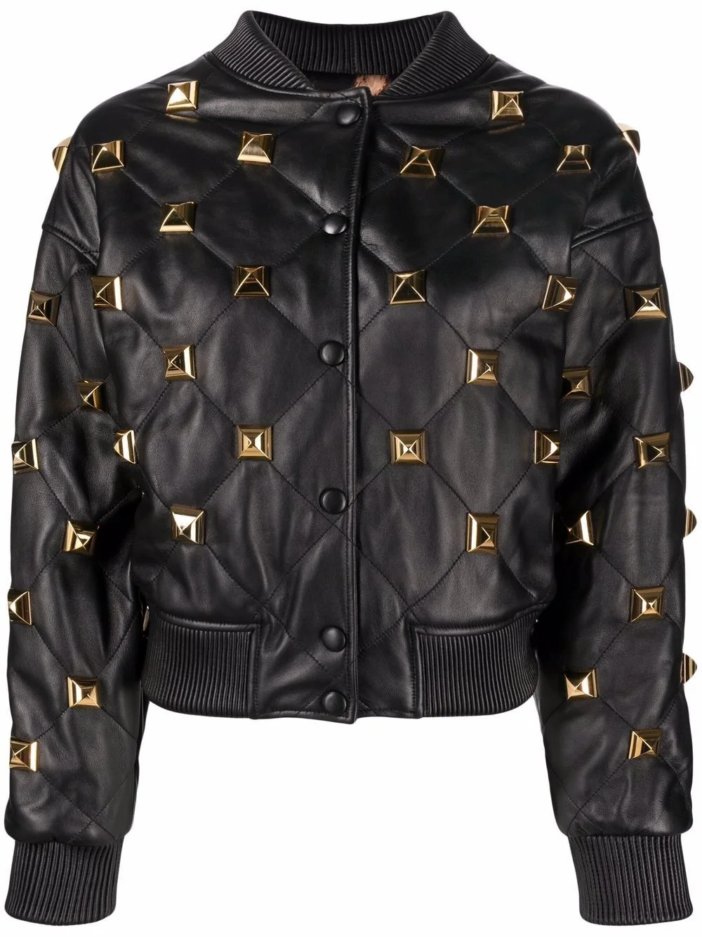 studded quilted bomber jacket Philipp Plein is known for his edgy, bold designs and this leather quilted bomber jacket encapsulates the designer's rebellious spirit with its punk-inspired gold-tone studs. Imported Composition Outer: Lamb Skin 100% Lining: Polyester 100%, Acrylonitrile Butadiene Styrene (ABS) 100% SIZE & FIT Model measurements Height 5 ft 10 in(1.79 m) Bust/Chest 34.25 in(87 cm) Hips 37 in(94 cm) Waist 25.19 in(64 cm) FittingInformation This piece fits true to size. We recommend you get your regular size Cut for a slim fit Made with a mid-weight non-stretch fabric Washing instructions Specialist Cleaning