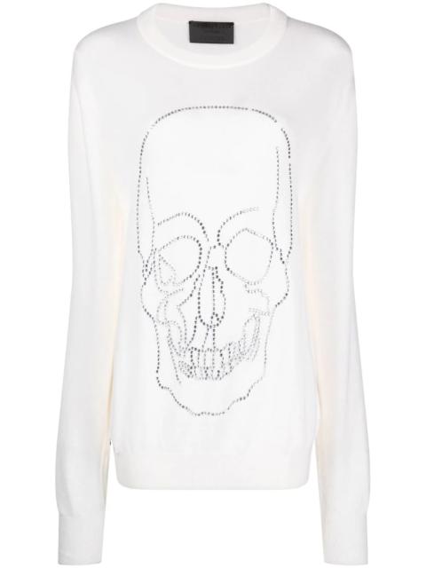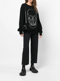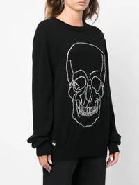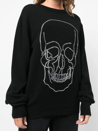 studded-skull cashmere pullover black cashmere round neck skull stud detailing long sleeves ribbed cuffs ribbed hem Made in Italy Composition Cashmere 100% SIZE & FIT Model measurements Height 5 ft 9 in(1.75 m) Bust/Chest 32.67 in(83 cm) Hips 36.22 in(92 cm) Waist 24.8 in(63 cm) FittingInformation This piece fits true to size. We recommend you get your regular size Cut for a loose fit Made with a mid-weight fabric Washing instructions Hand Wash