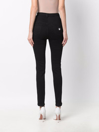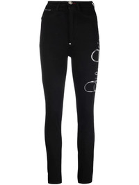 logo-print jeggings Highlights - Black - Cotton - Logo print at the leg - Logo patch to the rear - High waist - Belt loops - Front button and zip fastening - Classic five pockets Imported Composition Cotton 92%, Polyester 6%, Spandex/Elastane 2% SIZE & FIT Model measurements Height 5 ft 9 in(1.75 m) Bust/Chest 32.67 in(83 cm) Hips 36.22 in(92 cm) Waist 24.8 in(63 cm) FittingInformation This piece fits true to size. We recommend you get your regular size Cut for a close fit Made with a mid-weight stretch fabric Washing instructions Hand Wash